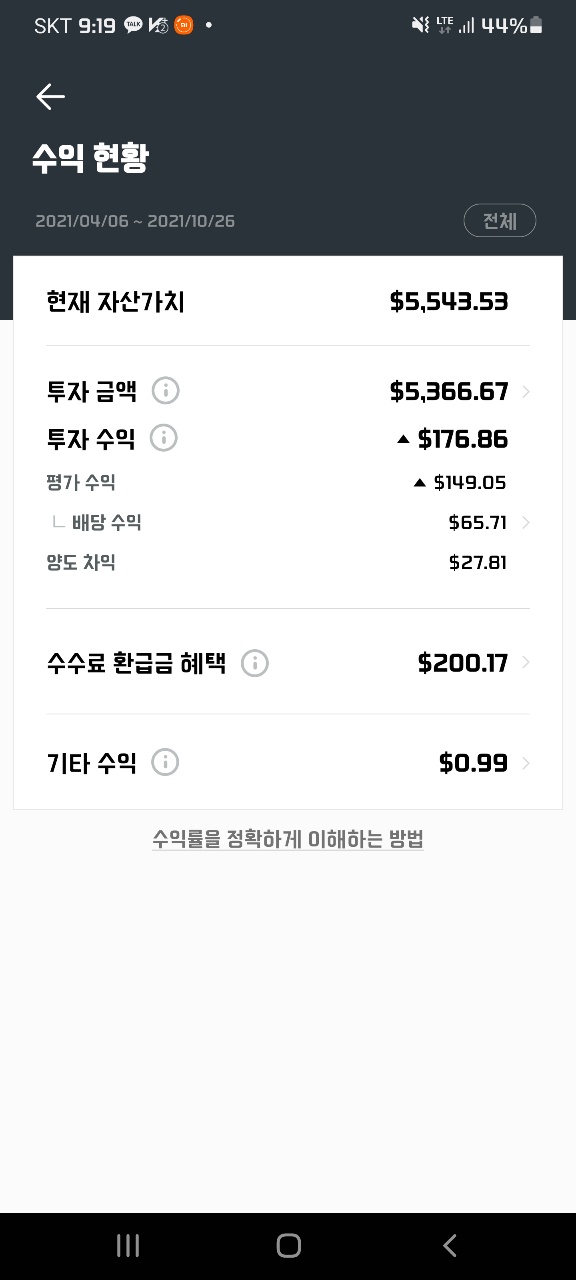 이제 두 서비스의 투자 결과를 확인해 보자