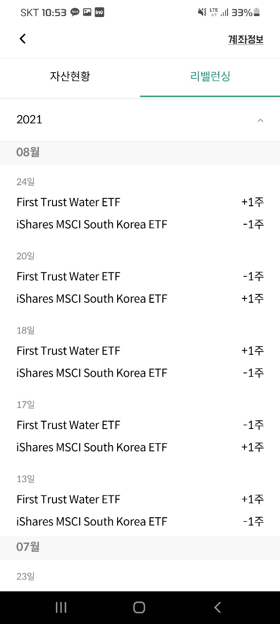 그래서 에임의 경우 리밸런싱이 필요한 경우 앱에서 자문 승인 알림을 받게 되고 이를 받아들어야 실제 투자가 이루어 지게 된다. 그래서 아무래도 시간이 소요되다 보니 상황이 바뀌어 가끔 자문내용대로 매수/매도가 바로 이루어 지지 않는 경우도 있다. 파운트의 경우 처음 가입하고 투자를 하면 그 뒤부터는 한번씩 운용 현황만 확인해 주면 된다. 아무래도 편의성의 측면에서는 후자가 좀 더 유리한 측면이 있다.
